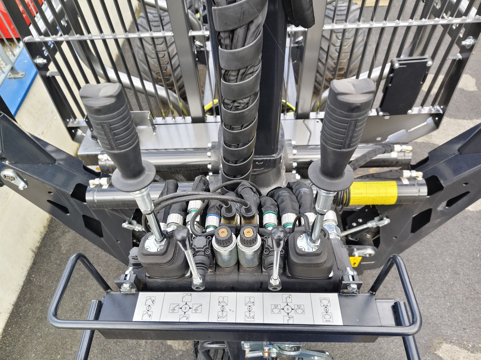 am Schutzgitter, Motorsägenhalterung, Stützfuß mit Kurbel, Flap Down Sützen, Elektro on off Steuerung,