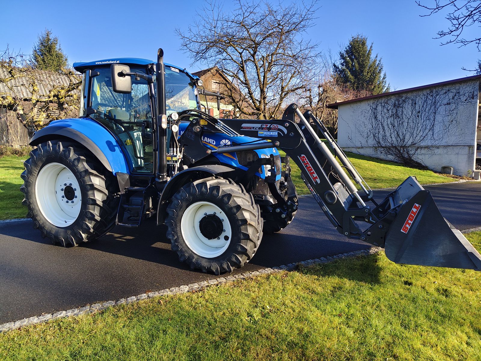 Schöner Traktor New Holland T5.95 Dual Command 40 km/h, Getriebe 24/24 2-fach Lastschaltung, Powershuttle, EHR, Klima, Luftsitz, 3 Heck + 2 ZWA Steuergeräte mit Kreuzhebel, Fronthydraulik,